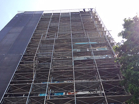 施設の内装・外装の修繕工事のための足場組立工事です。
