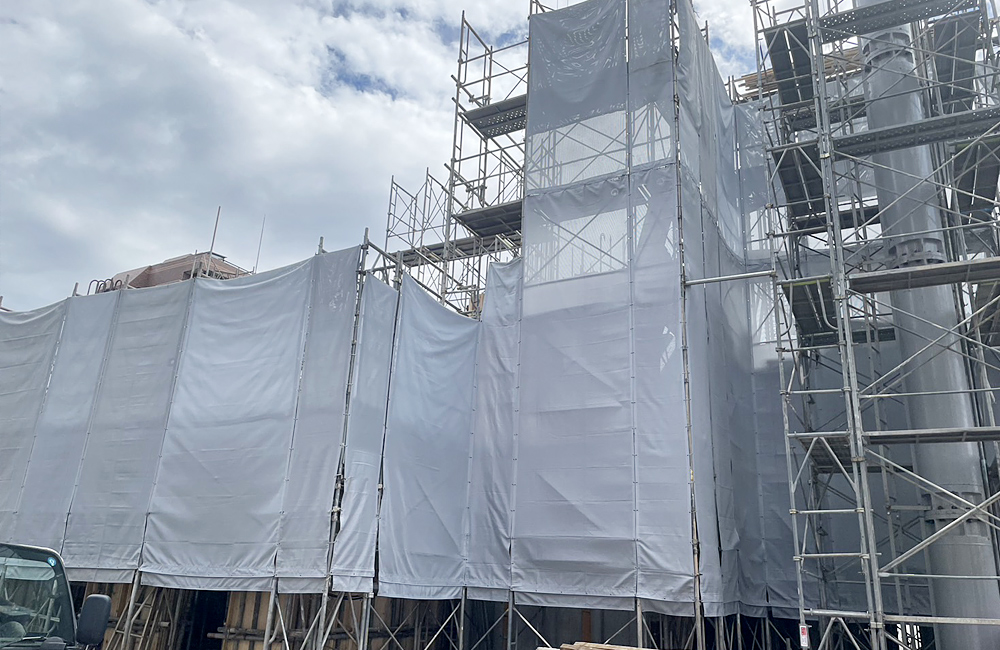 施設の内装・外装の修繕工事のための足場組立工事です。